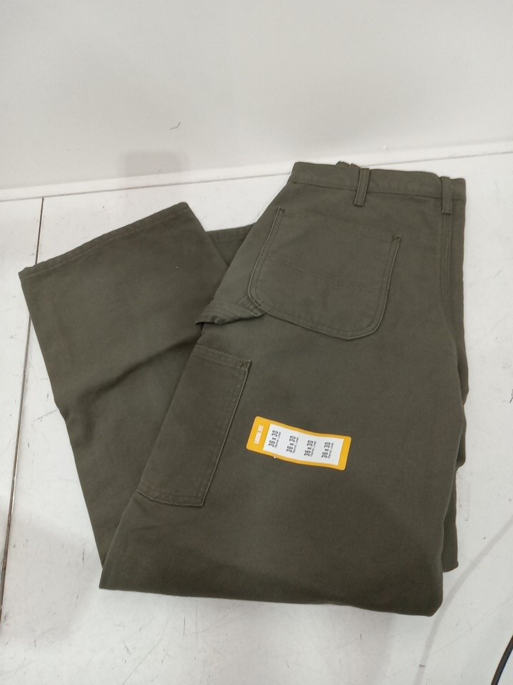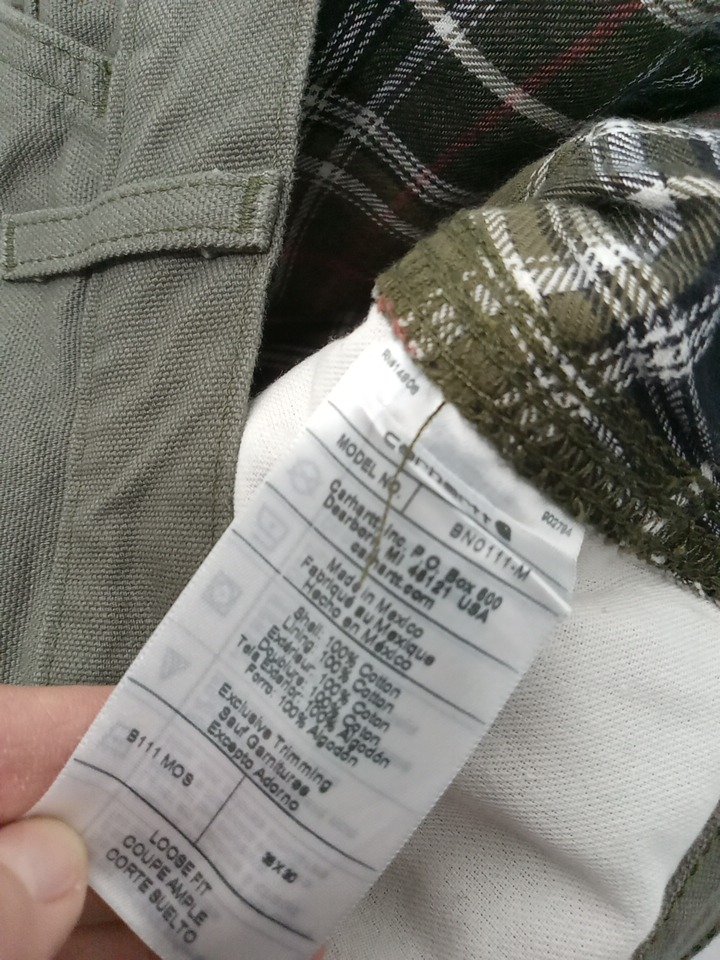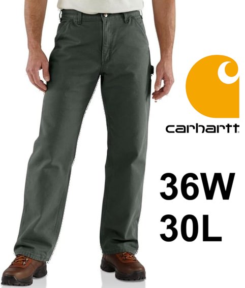 MEN'S CARHARTT LOOSE-FIT WASHED DUCK FLANNEL LINED UTILITY WORK PANT - 36wx30l - moss green (Style: BN0111-M)