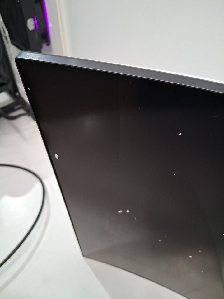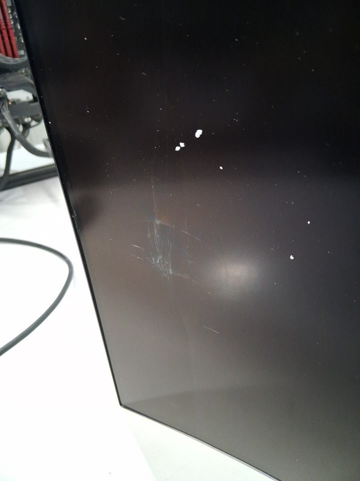 + Item has a crack/is bleeding down the left side of the display + + We are unsure how damaged the screen is as the power adapter is missing and we cannot fully test it +