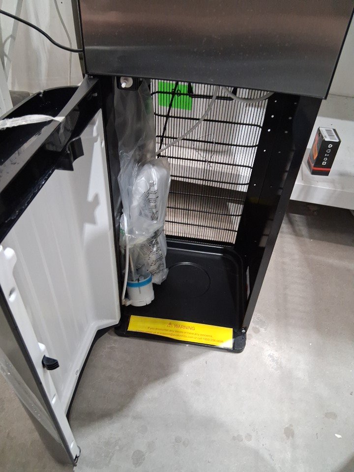 Due to shipping, a lot of water has leaked out of the cooler, soaking the exterior and seemingly causing the power to no longer function. The night light still powers on when plugged in, but the cooler itself does not appear to have any power - see photos. Does not show any signs of use, as packaging was still sealed when it arrived to our facility and was only opened to check the condition of the unit.
