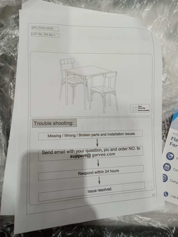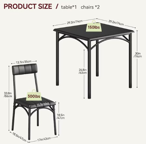 3PC garvee Small Dining Table Set with 2 Cushion Chairs and 1 dining table - 34" x 17" - 30" x 29.2" - black (model:PHO-0X29M5X6)