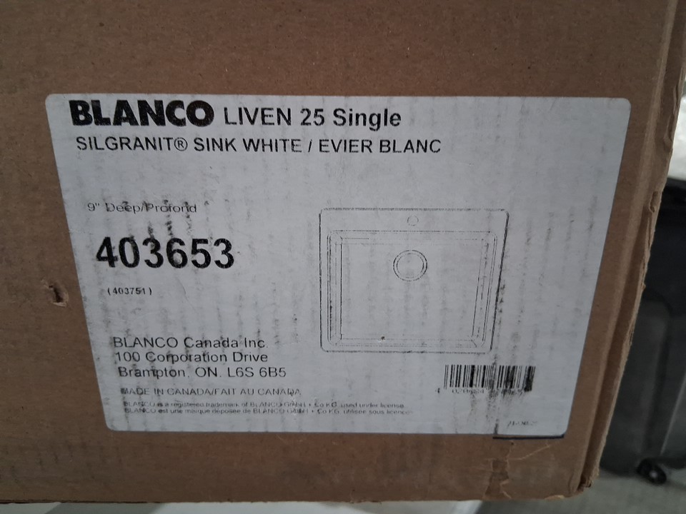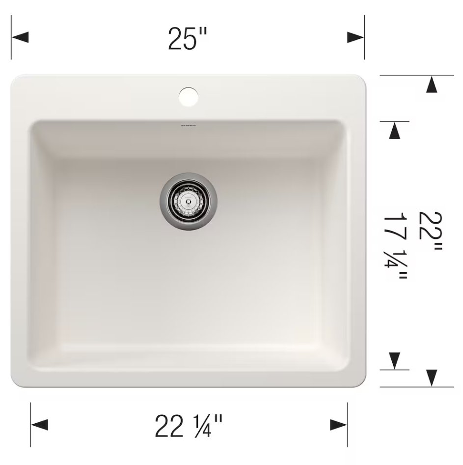 Blanco LIVEN SILGRANIT Single Bowl Drop-In/Undermount Kitchen Sink - 25" x 22" - White - (model: 403653)