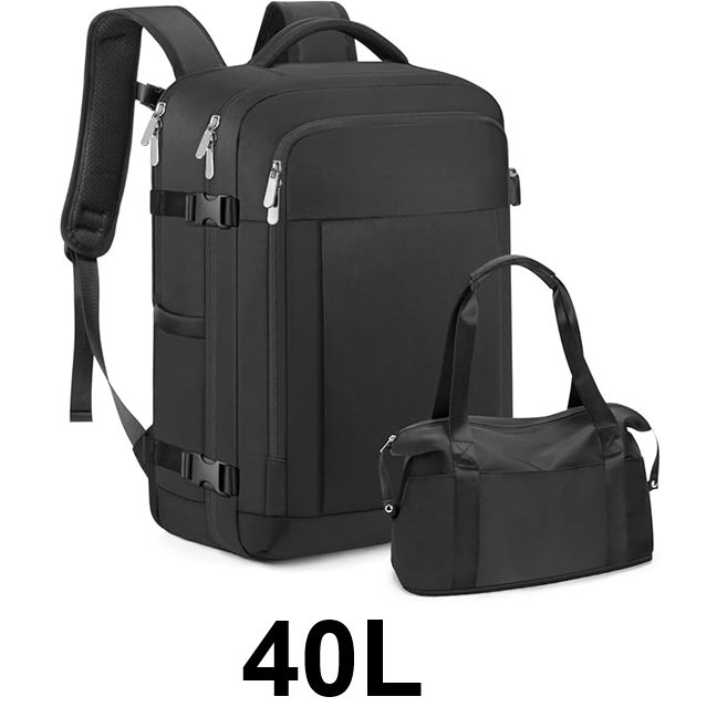 women's Waterproof Outdoor casual travel back pack with duffel bag - 40L - black