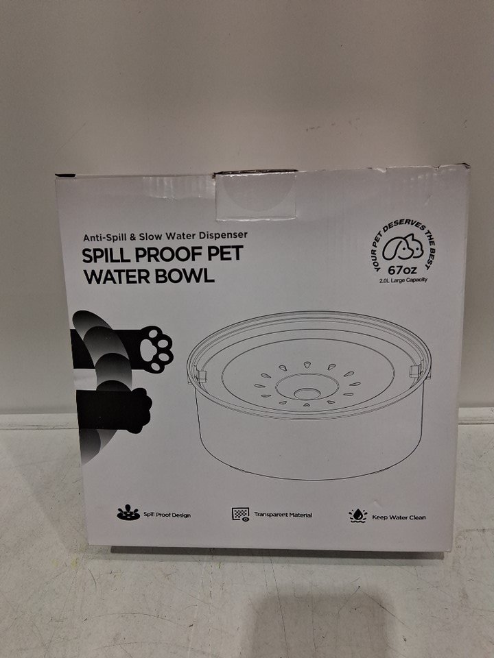 Spill proof Pet water bowl - hold 2L - round - clear/grey/blue