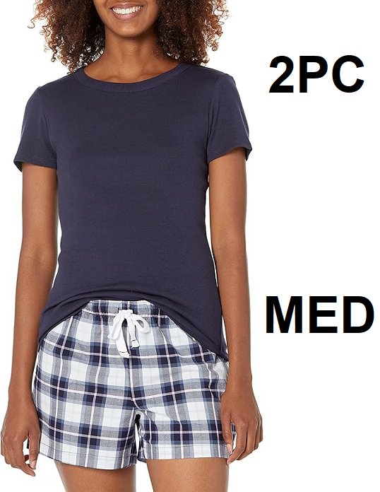 2PC WOMENS AMAZON ESSENTIAL Poplin Short and Sleep Tee Set - MEDIUM - NAVY PLAID