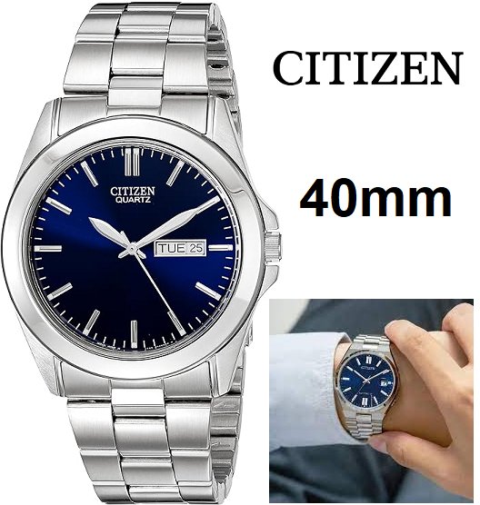 men's citizen quartz stainless steel blue dial watch - 40mm - silver-tone -(model: bf0580-57l).