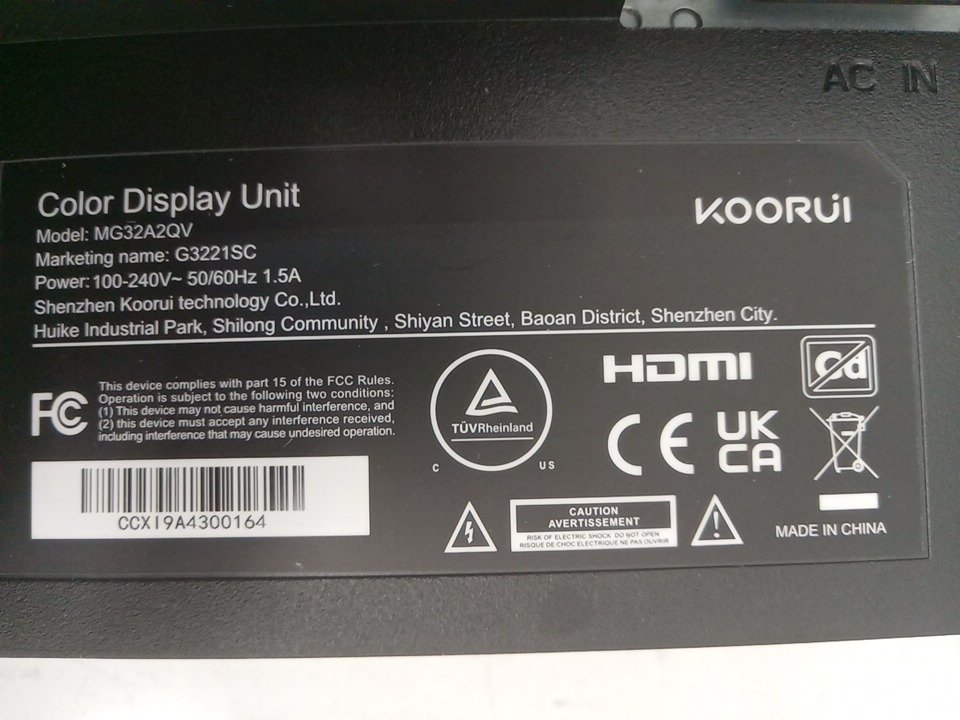 KOORUI QHD 31.5" Curved Computer Gaming Monitor, 2560 x 1440 qhd, 1500R, 170hz - blACK - (MODEL:MG32A2QV)