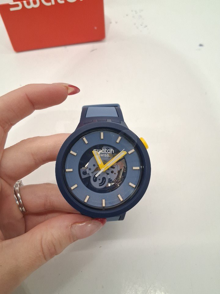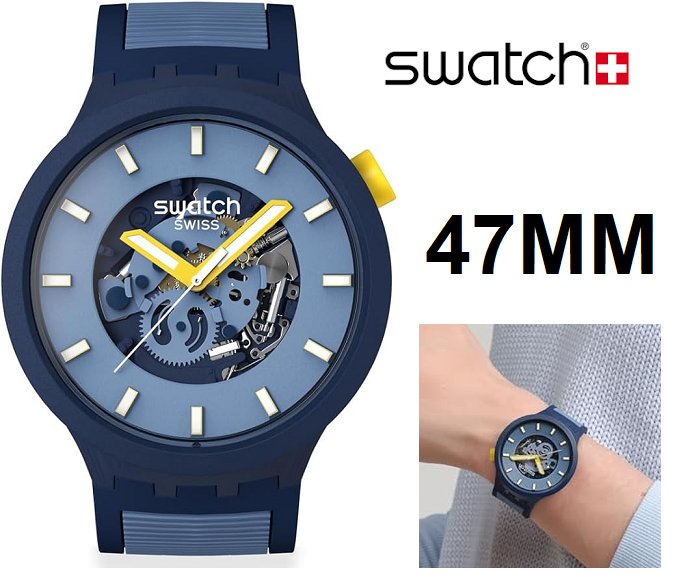adult swatch big bold biosourced wrist watch - 47mm - blue (model: SB05N117)
