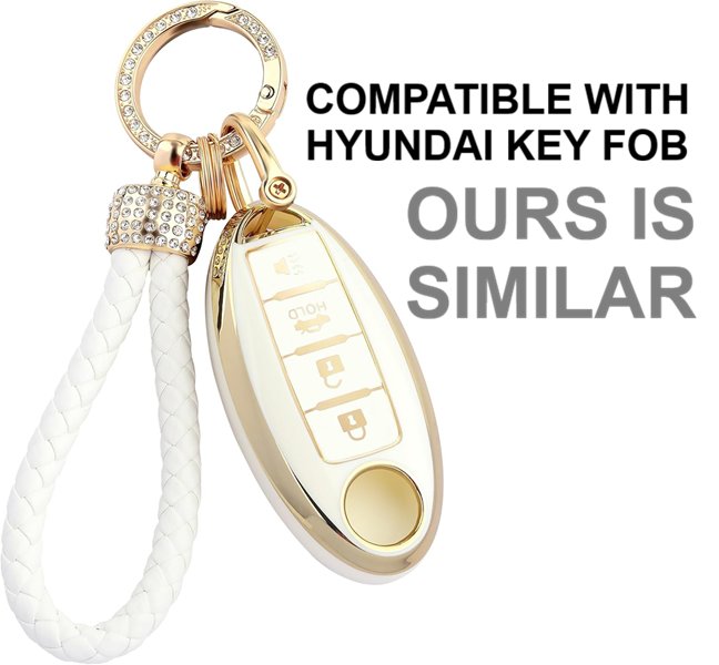 STYLISH SOFT TPU CAR KEY FOB COVER/CASE WITH BLING KEYCHAIN - COMPATIBLE WITH HYUNDAI KEY FOB