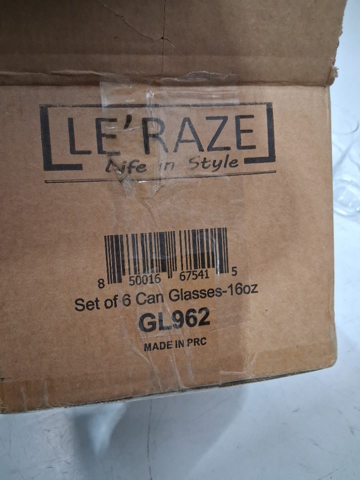 6PK LE'RAZE CAN SHAPED DRINKING GLASSES - 16oz - CLEAR (MODEL: GL962)