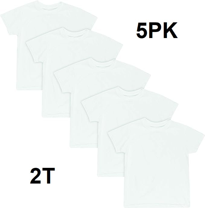 5PK BOYS HANES Crew Shirt - 2T - WHITE