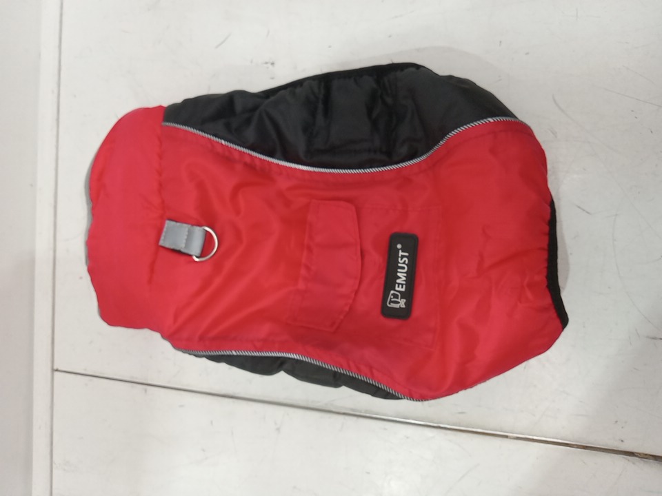 EMUST Windproof Winter Dog Jacket with Furry Collar - SMALL - RED/BLACK