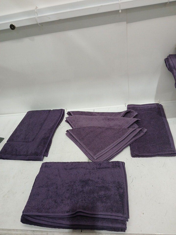 9pc lexco merit zen COLLECTION 100% Certified Organic Cotton bath set - 6 face cloths, 1 bath towel, bath mat, and hand towel, EGGPLANT