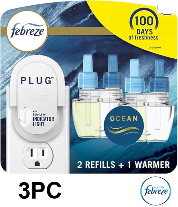 3PC FEBREEZE PLUG IN DUAL AIR FRESHENER - 2 REFILLS & 1 WARMER - ocean scent