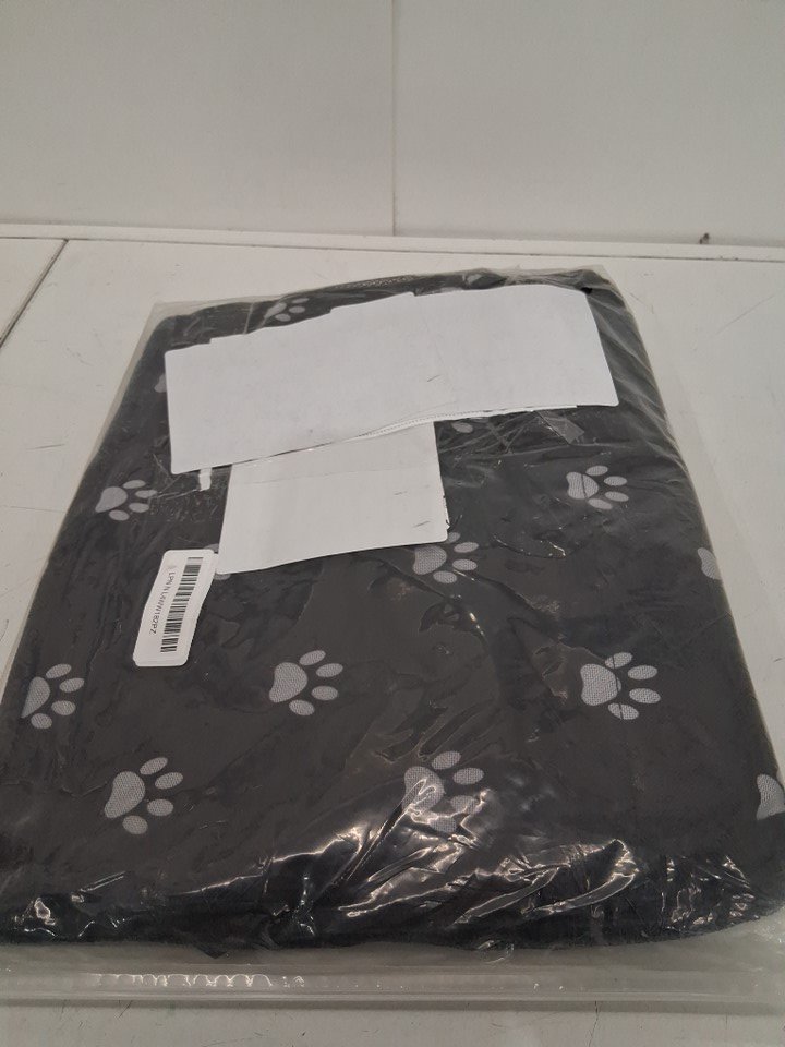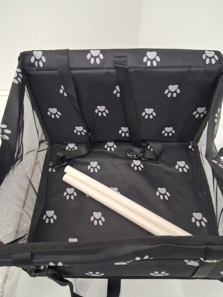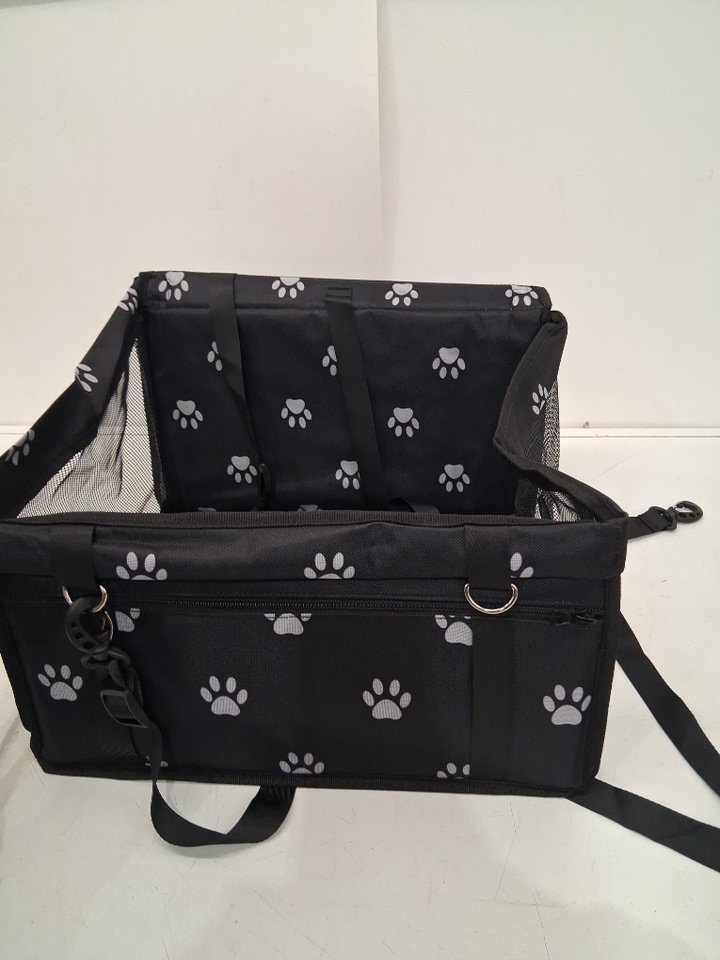 Washable Foldable Car Pet seat with leash - 16" x 12" x 10" - black paw prints