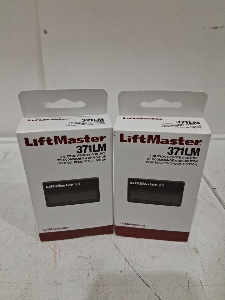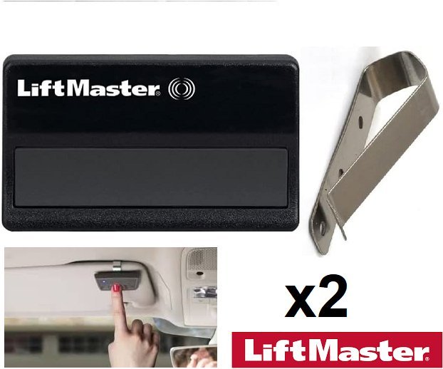 2 LiftMaster Garage CAR SINGLE BUTTON Remotes WITH VISOR CLIPS - BLACK (MODEL: 371LM)
