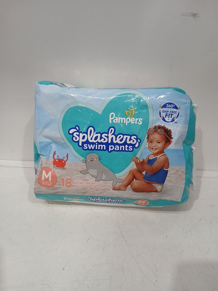 18pk pampers splashers swim pants diapers - medium (20-33lbs)