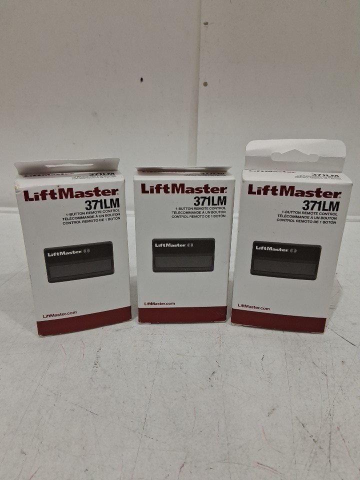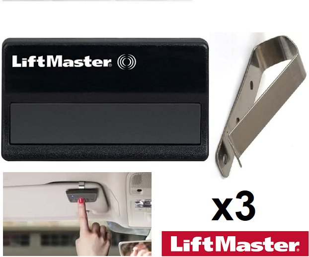 3 LiftMaster Garage CAR SINGLE BUTTON Remotes WITH VISOR CLIPS - BLACK (MODEL: 371LM)
