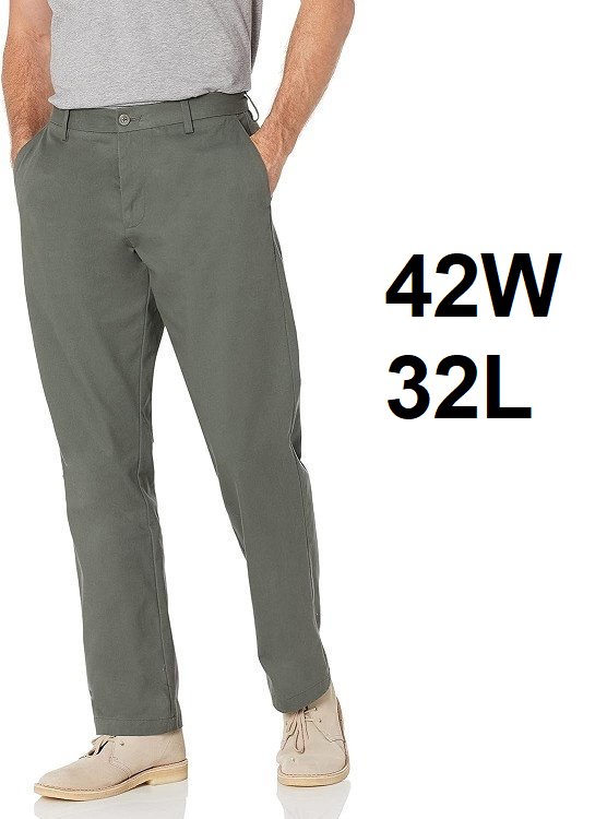 MEN'S AMAZON ESSENTIALS CLASSIC FIT WRINKLE RESISTANT FLAT FRONT CHINO PANT - 42w x 32l - OLIVE GREEN (STYLE: F16AE60000)