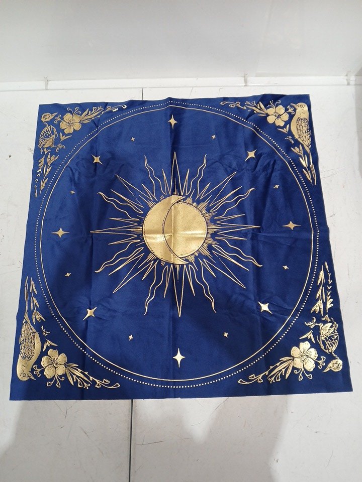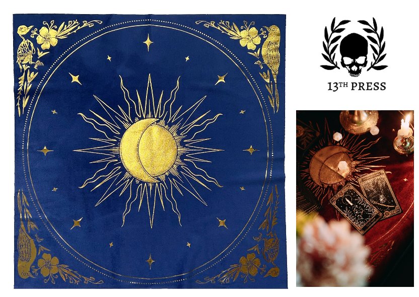 13th Press Velvet Altar Cloth - "Celestial" - 22" - navy blue and gold