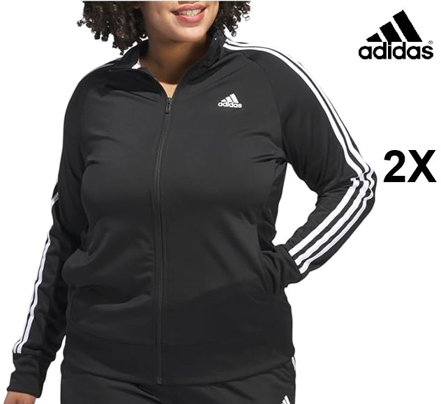 women's adidas Essentials Warm-Up Tricot Slim 3-Stripes Track Jacket - 2x - black (style-h48445)