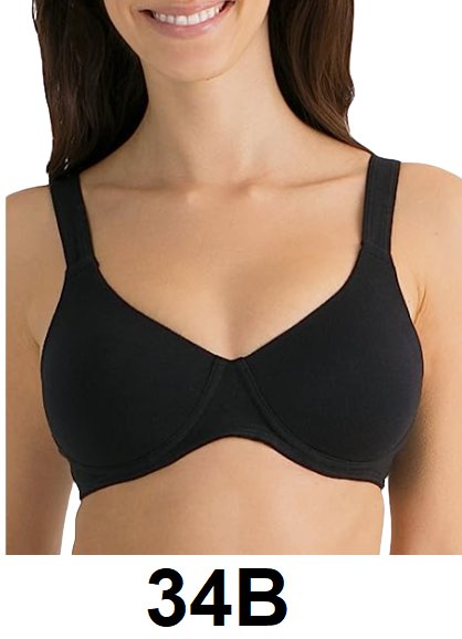 WOMEN'S FRUIT OF THE LOOM COTTON PADDED WIRE FREE BRA - 34B - BLACK (STYLE:FT663)