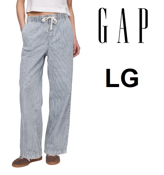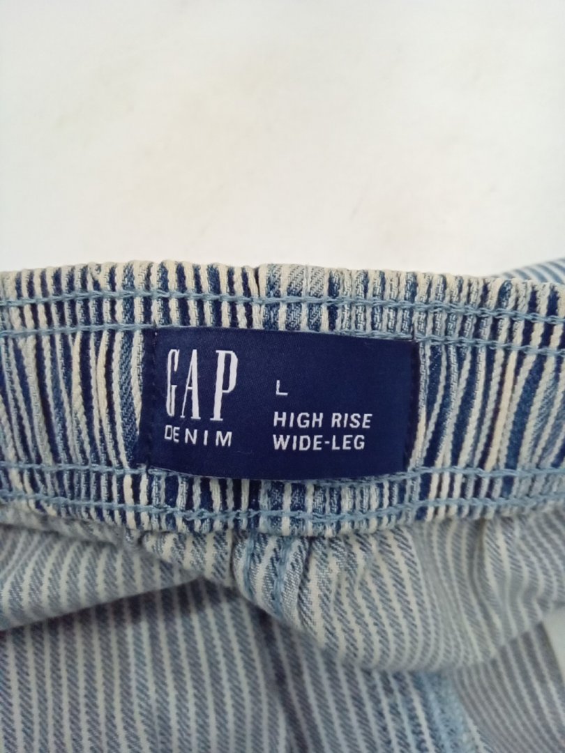 Women's GAP High Rise Pull-On Stripe Wide-Leg Jeans - Large - Railroad Stripe Blue