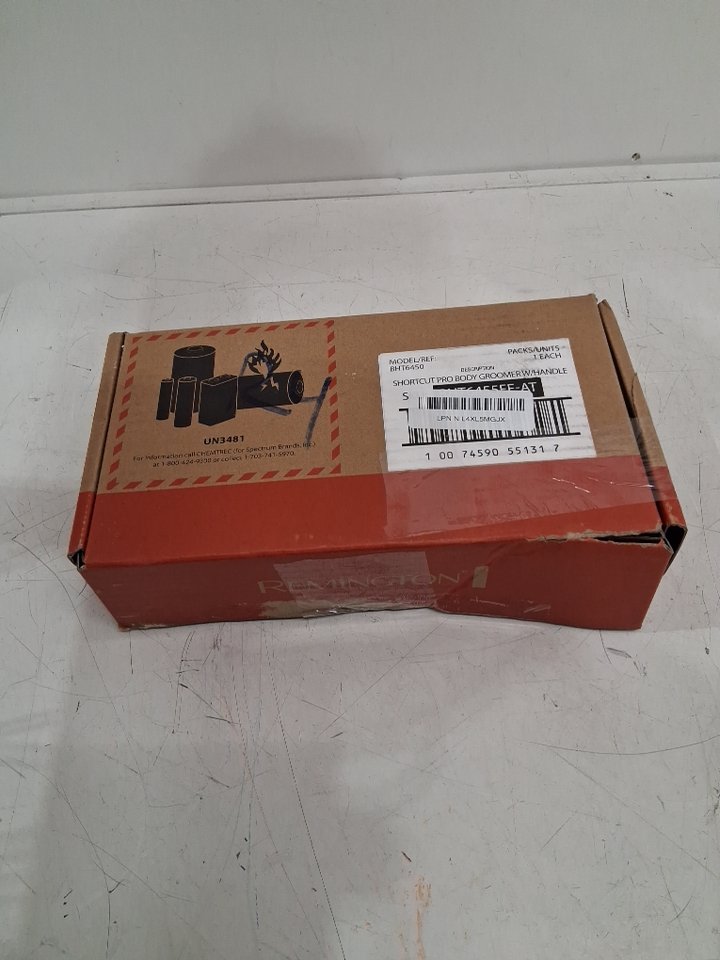 8pc mens Remington Shortcut Pro Body Hair Trimmer with Rechargeable Battery - 5 Length Combs - yellow (model: BHT6450)