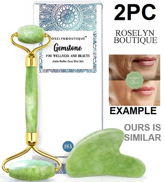 2PC ROSELYNBOUTIQUE Gua Sha & Jade Roller for Face Set- Natural Healing Crystal Stone