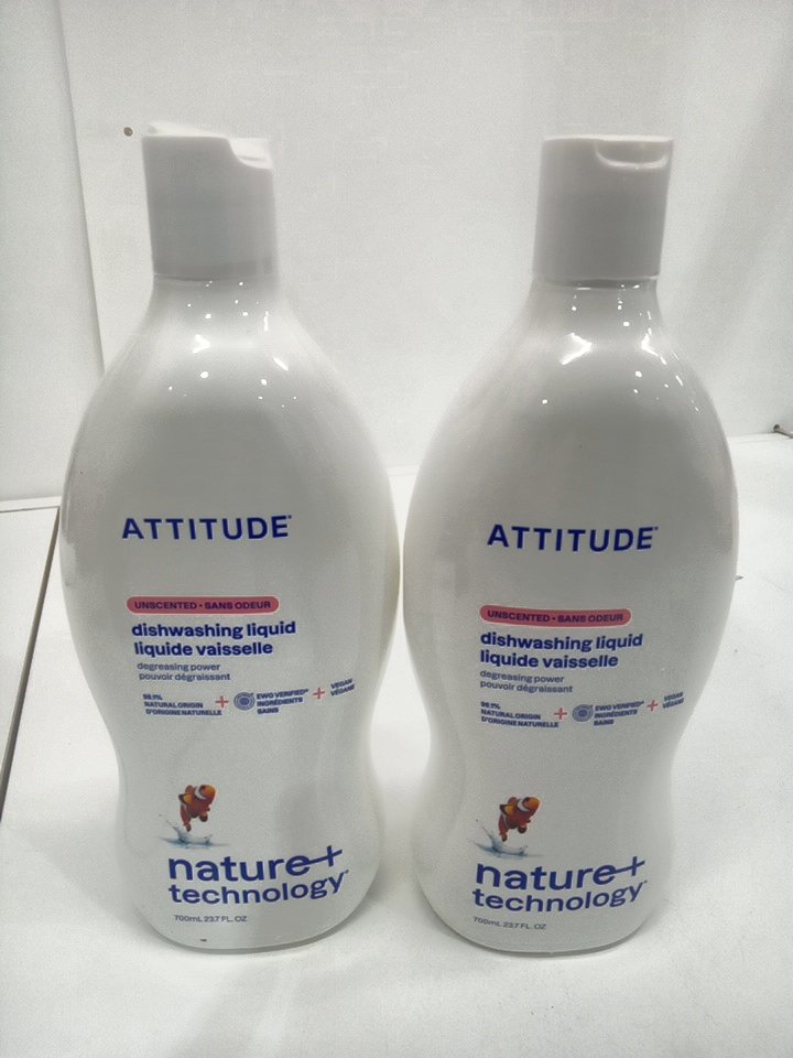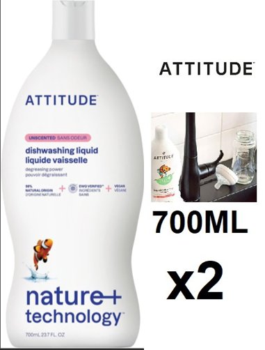 2 ATTITUDE DISHWASHING LIQUID WITH DEGREASING POWER -UNSCENTED- 700ML EACH