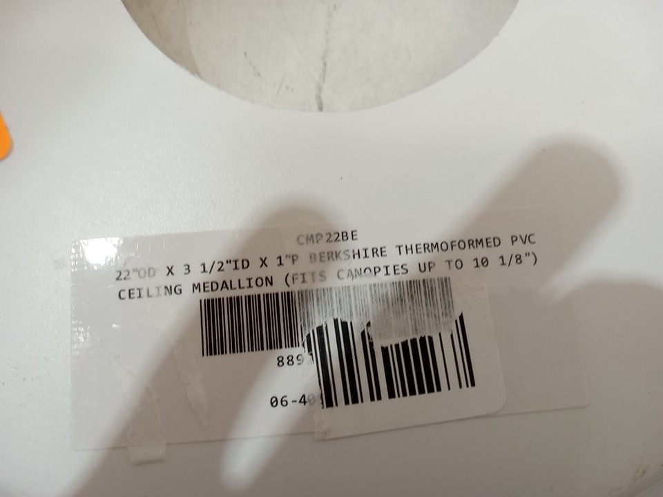 Ekena Millwork Berkshire Thermoformed PVC Ceiling Medallion - 22" - white (Fits Canopies up to 10 1/8") 22"OD x 3 -1/2" ID x 1" (WHITE) MODEL: CMP22BE