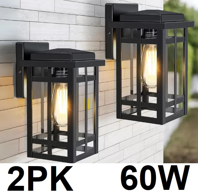 2Pk UNBRANDED Dusk to Dawn Outdoor Wall Lighting - 9.7" - 60w - black - (model: ‎WL308B)