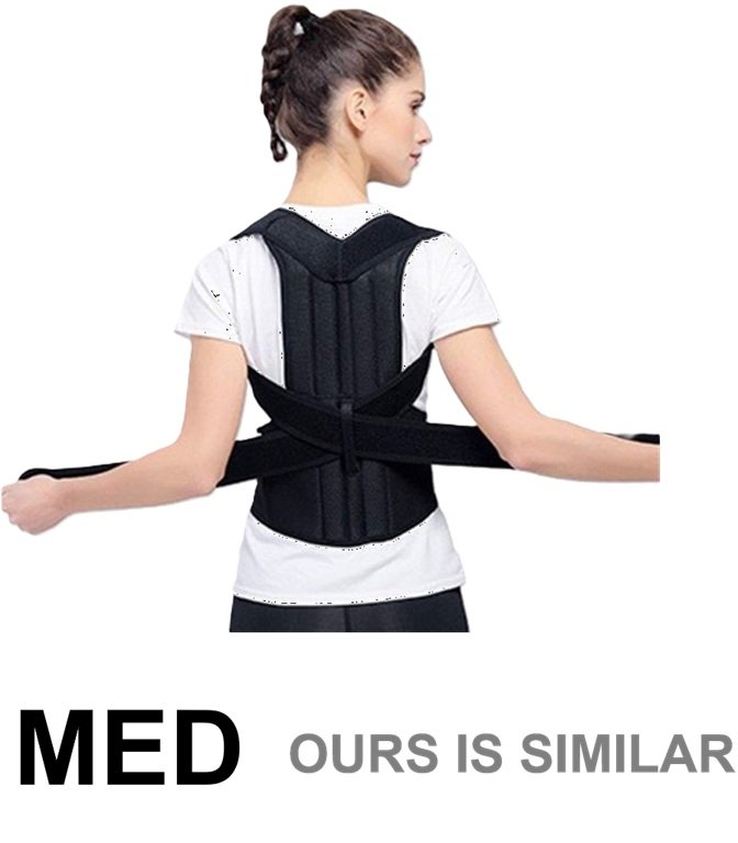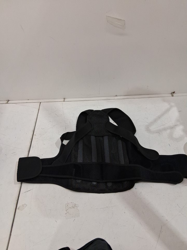 unisex Ergonomic Back Brace Adjustable Straps and Soft Breathable Mesh Fabric - Medium - black