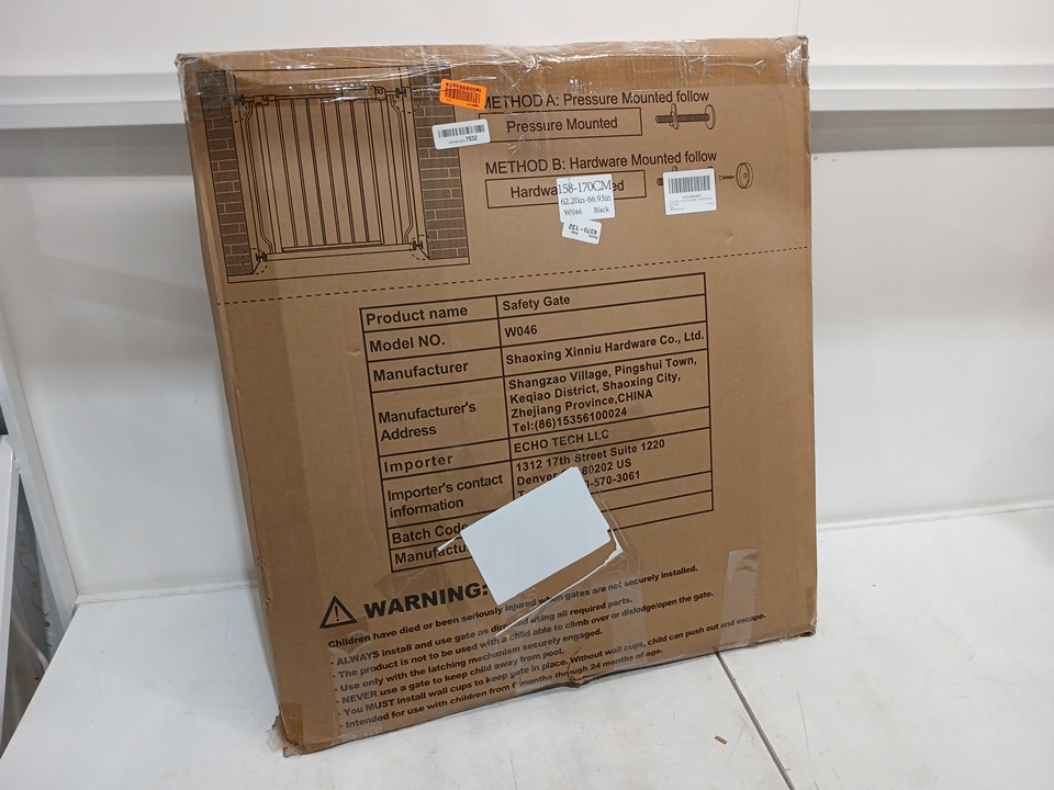 WAOWAO EXTRA WIDE PRESSURE MOUNT WALK THROUGH, SWING AUTO CLOSE SAFETY BABY GATE - 38.58" - 43.31" - BLACK (MODEL: W046)