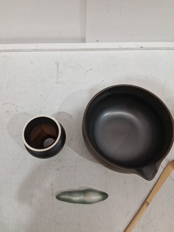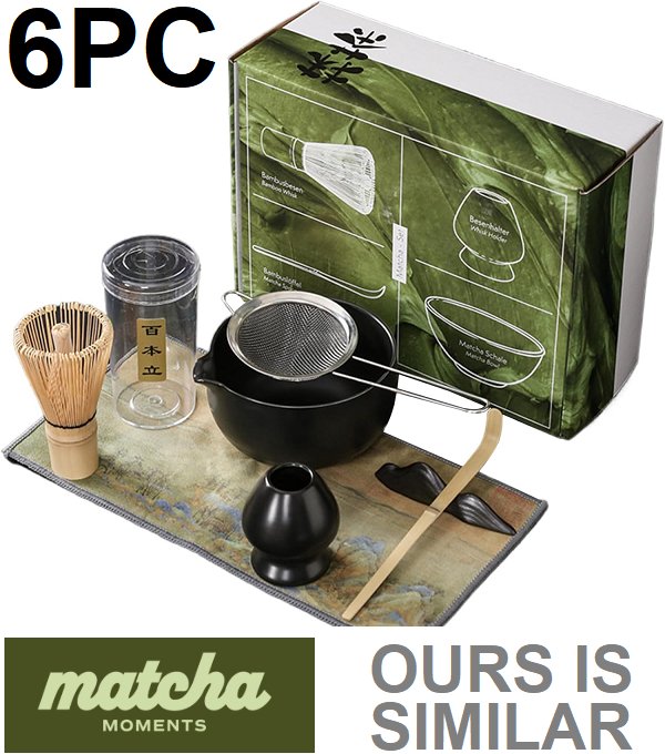 6PC matcha moments match making set - bowl, whisk, whisk holder, scoop, sifter, scoop holder - black / bamboo