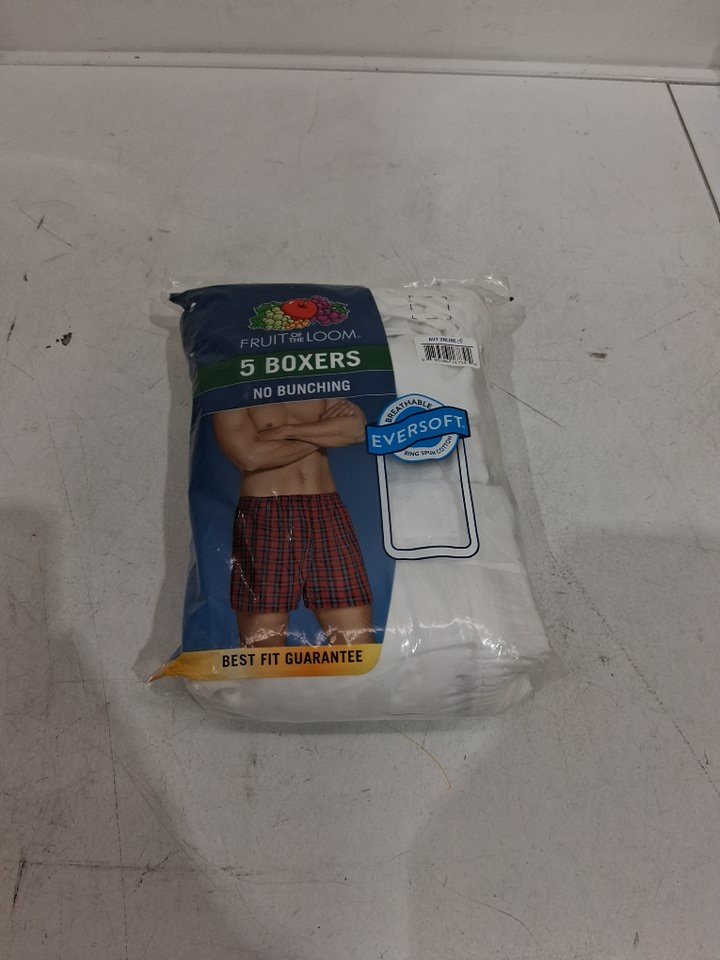5PK Men's Fruit of the Loom No bunch Tag free Boxers - Large 36-38 - White