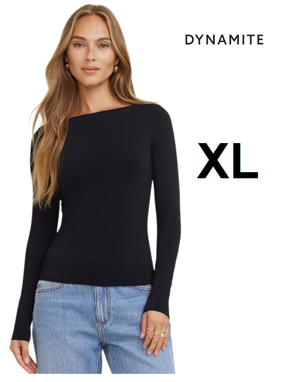 WOMENS Dynamite Nola Sculpt Long Sleeve Top - EXTRA LARGE - Black