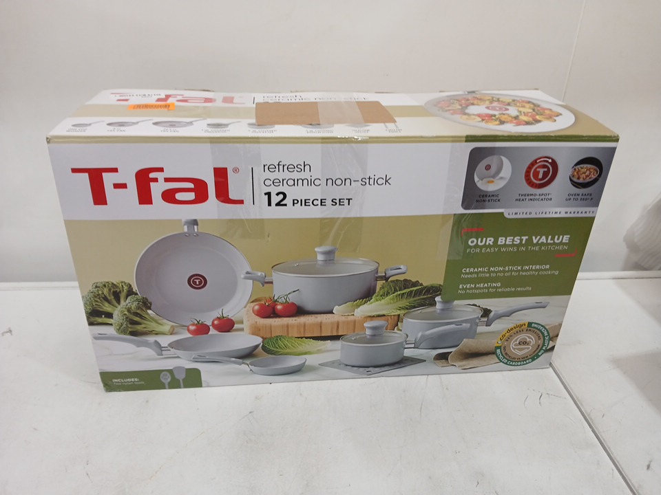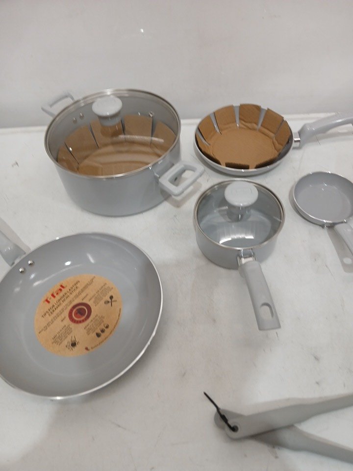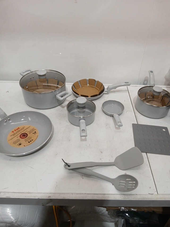 12pc T-FAL Refresh Ceramic Nonstick Cookware Set - moon grey - (MODEL:C486SC64)