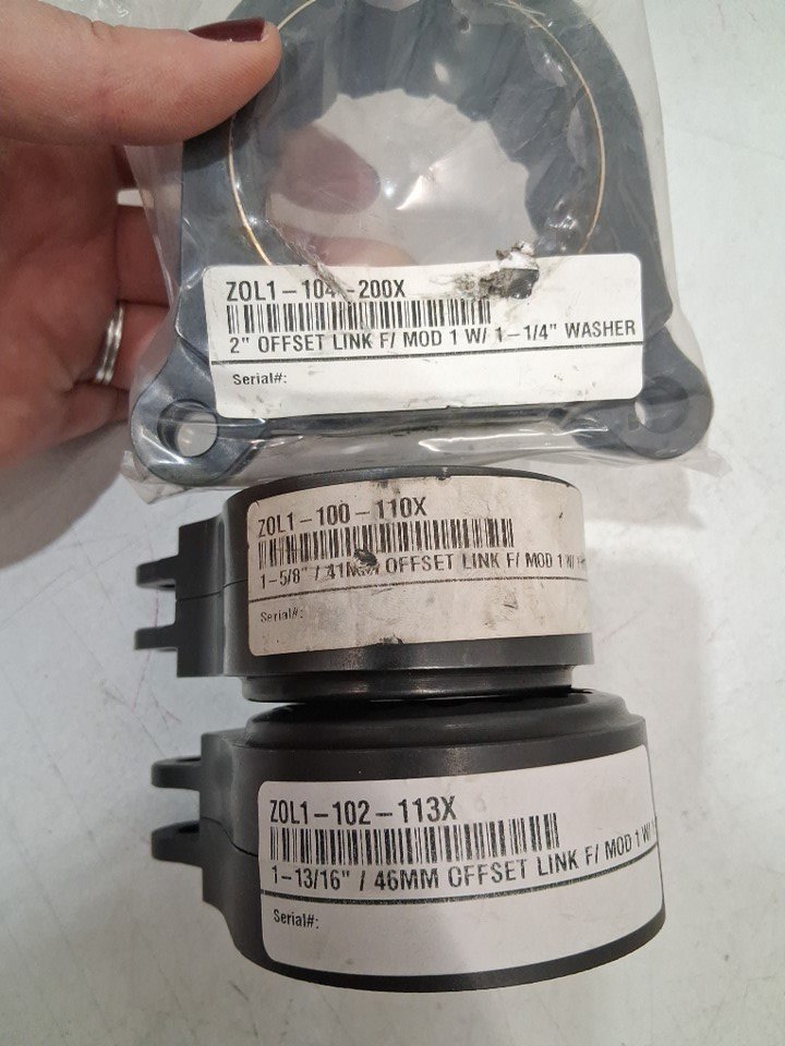 the 1 5/8" item looks to be lightly used as it is dirty and scuffed while the others are clean; the 1 13/16" appears new and the 2" is in sealed packaging