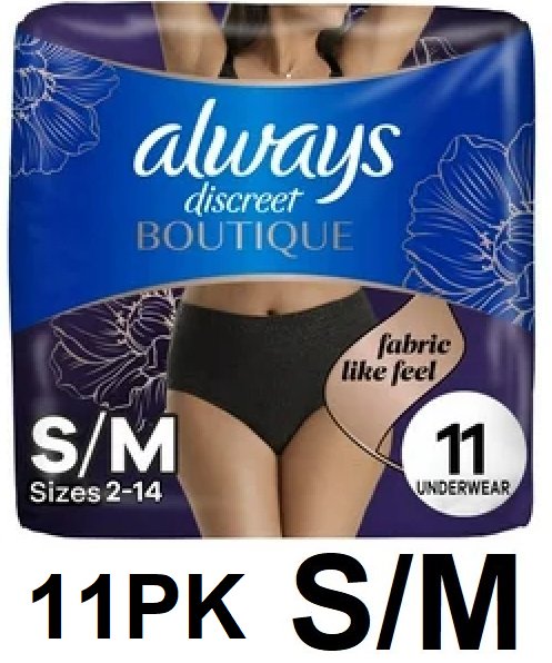 11pk Always Discreet Boutique Incontinence and Postpartum Underwear - small/medium - black