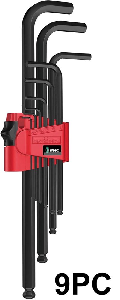 9 Pc Wera Hex Plus L-Key Set - 1.5mm to 10mm - red/black - (model: 950PKL/9BM)
