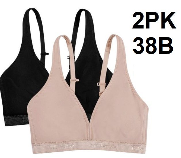 2Pk WOMENS FRUIT OF THE LOOM Wirefree Cotton Bralette Bra - 38b - BLACK/TAN (STYLE:FT799PK)