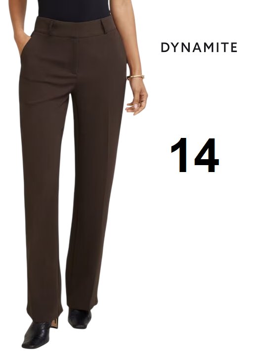 WOMENS DYNAMITE CAMELIA STRAIGHT LEG TROUSER DRESS PANT - 14 - BROWN