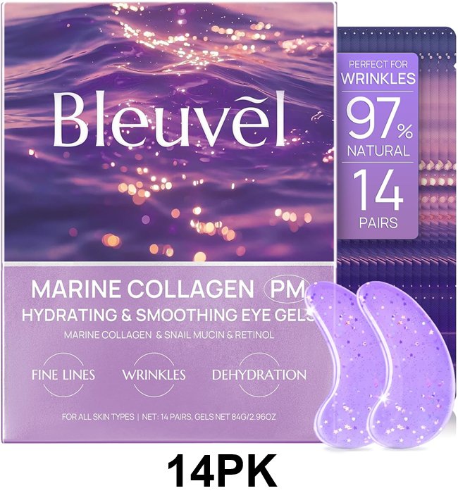 14PK BLEUVEL MARINE Eye Patches for Puffy Eyes and Dark Circles with Blue Algae Extract Collagen & Caffeine - 84G