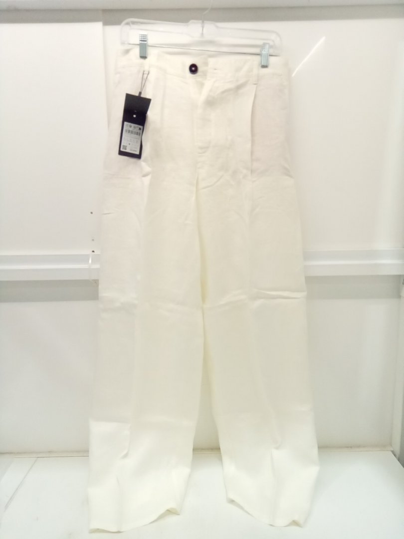 Women's Massimo Dutti Mid-rise wide-leg linen trousers - Size 6 - White (Style: 5031/831)