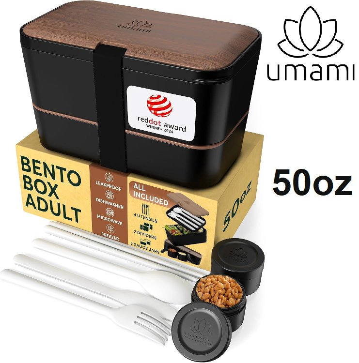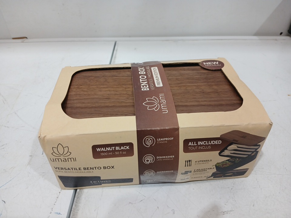 umami all-in-one leakproof bento lunchbox - 50oz - black/walnut