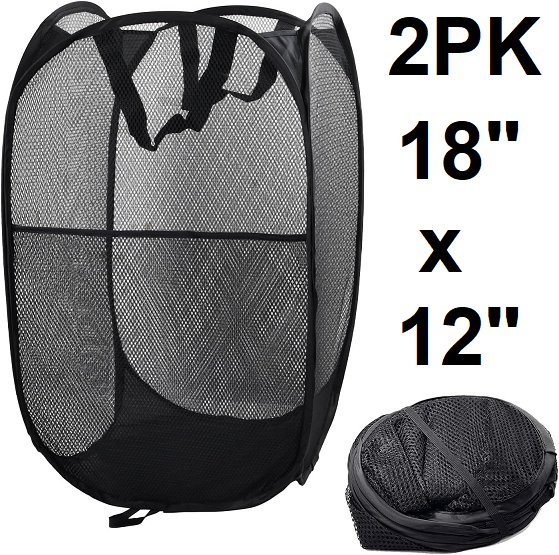2PK collapsible laundry baskets with handles - 18" x 12" - Black