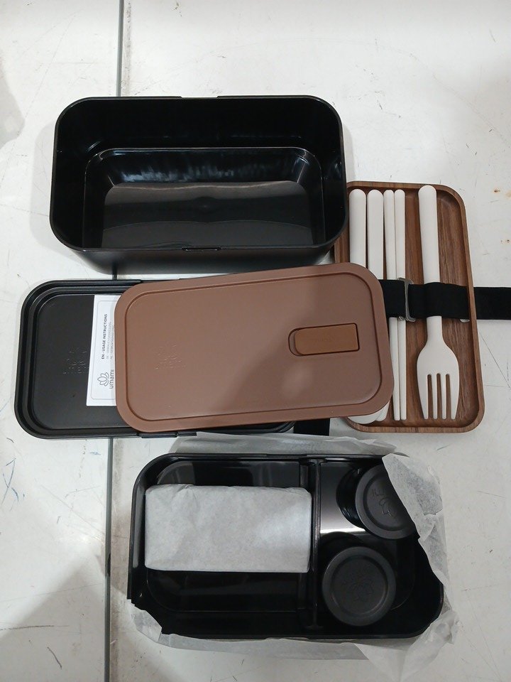 umami all-in-one leakproof bento lunchbox - 50oz - black/walnut