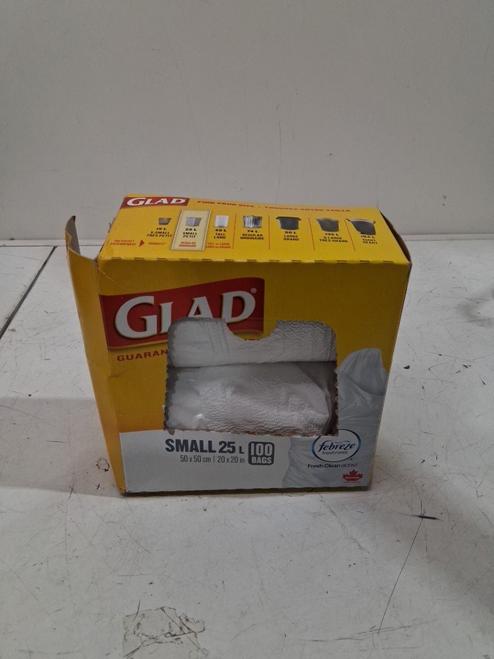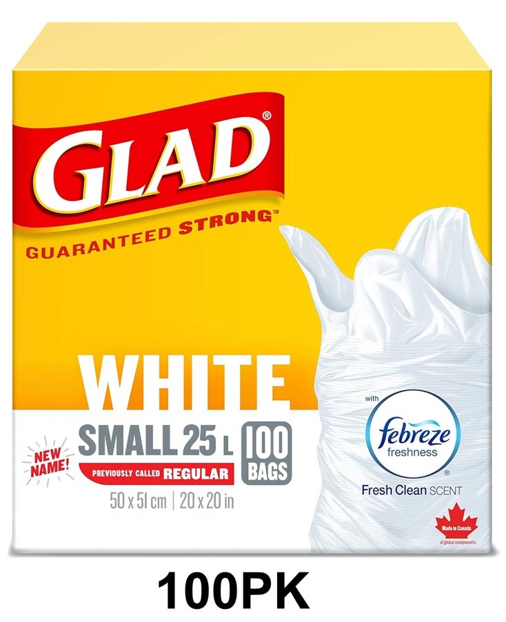 100PK GLAD FORCEFLEX TALL WHITE DRAWSTRING KITCHEN GARBAGE BAGS WITH FEBREZE ODOUR CONTROL - 25L - FRESH CLEAN