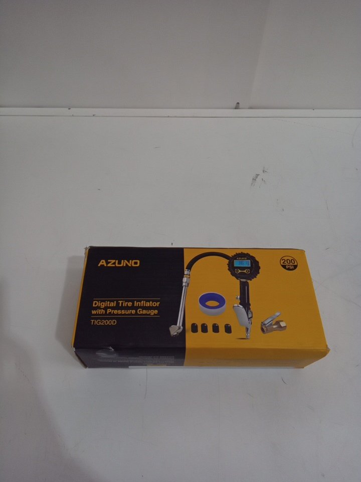 AZUNO Digital Tire Inflator with Pressure Gauge - 200 PSI Heavy Duty Air Compressor, with Rubber Hose Lock on Air Chuck and Quick Connect Coupler (MODEL: TIG200D)