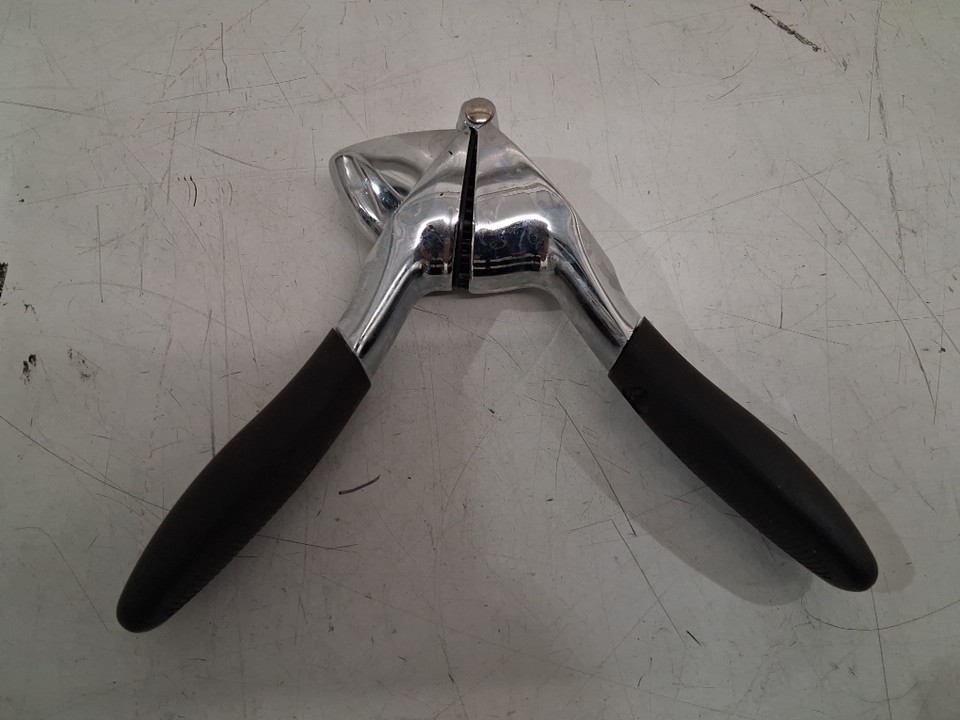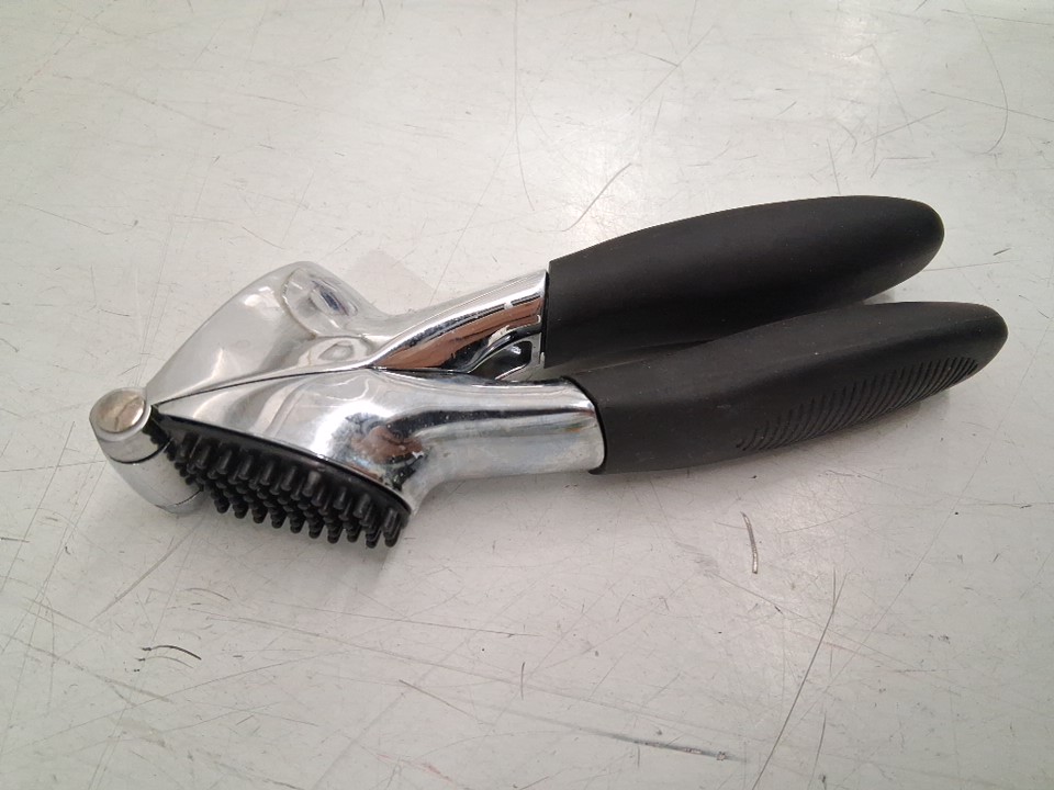 TRUDEAU STAINLESS STEEL GARLIC PRESS WITH SILICONE GRIP HANDLES - BLACK